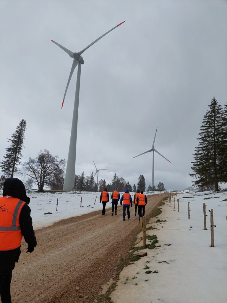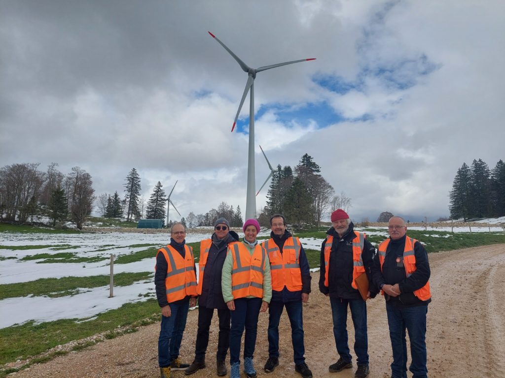 La visite des éoliennes de Sainte-Croix a été une expérience enrichissante pour tous les participants. Organisée par ProÉole Vaud et sous l’égide du chef de projet de Romande Energie, nos membres ont eu l’opportunité de découvrir de près les défis logistiques et les réalisations impressionnantes du projet, ainsi qu’un bref aperçu de mesures compensatoires mises en place. Les éoliennes, opérationnelles depuis janvier 2024, symbolisent un jalon important dans la transition énergétique de notre canton.