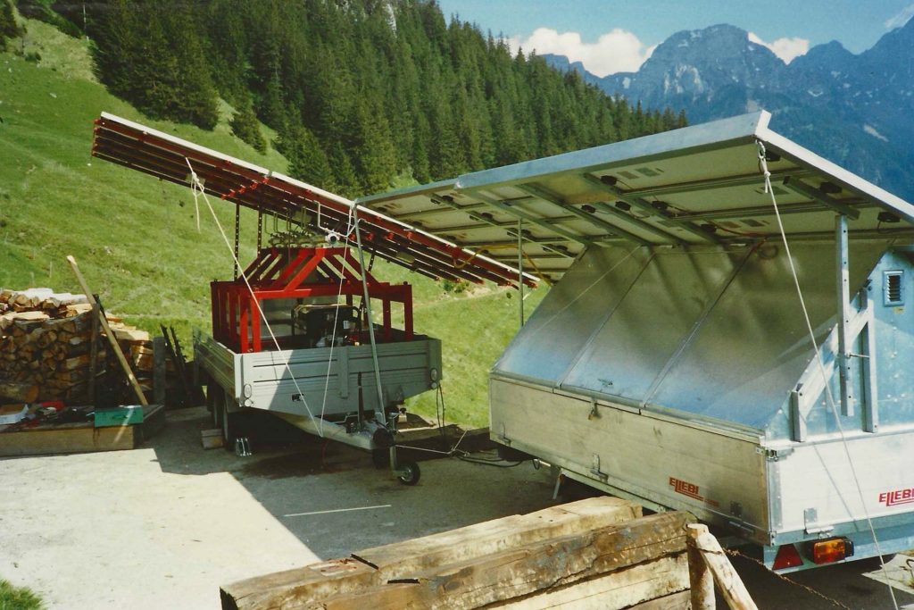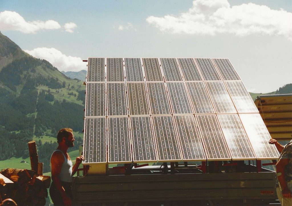 L’alternative proposée par l’ADER consistait en une installation photovoltaïque montée sur remorque, qui présentait l’avantage de pouvoir suivre le troupeau lorsque plusieurs lieux d’estivage étaient utilisés ou d’être mise à l’abri en hiver. Deux premiers prototypes étaient opérationnels dès 1990. Fin 1992, un troisième modèle a été construit, qui intégrait comme nouveauté, entre autres, des panneaux orientables en fonction de la course du soleil et rabattables en cas de vents tempétueux. Les remorques étaient toutes équipées de batteries afin de stocker l’énergie pour la nuit ou les jours de mauvais temps.
