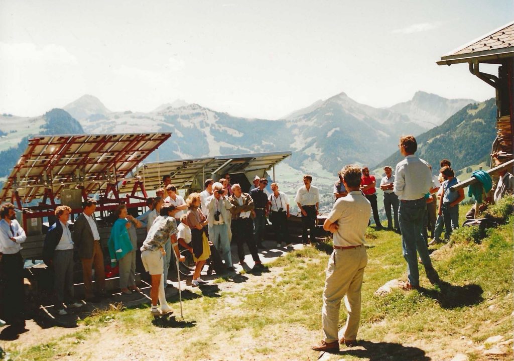 Le groupe de travail « Chalets d’alpage » de l’ADER, constitué en 1989, avait pour but de trouver une solution à un approvisionnement électrique renouvelable durant la saison estivale des alpages non raccordés au réseau. En plus de l’éclairage, il s’agissait surtout d’assurer l’alimentation de la machine à traire, gourmande en énergie. Pour subvenir à leurs besoins, les exploitants recourent habituellement aux génératrices à essence, polluantes et bruyantes. Quant au raccordement au réseau électrique, il est coûteux et porte atteinte au paysage.